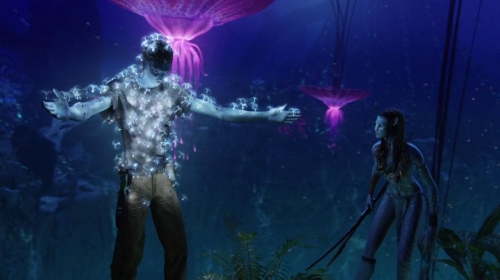 Le legs du western, du tempérament romantique, du modèle épique bref, de l’approche classique du paysage, inspire à Cameron une ambition de réinvention dans la mise en scène d’un récit mythologique qui prend source dans le cinéma américain. Ainsi les deux films proposent-ils des variations sur l’appréhension des grands espaces à conquérir où l’ampleur le cède à la densité et à l’épaisseur plastique. La planéité et le domaine panoramique du paysage de western classique sont remplacés par cette profondeur qui leur fait écho. Cameron cultive le lyrisme de Terrence Malick et le romantisme des récits pionniers de James Fenimore Cooper en radicalisant le lien organique de l’homme et de l’environnement, fertile, réactif, englobant. Cette matière totale du paysage abonde dans le sens d’un monde total, d’une totalité-monde en ce sens que ce monde est parfois synthétisé dans des visions (lunes, formes aqueuses, arbre-sanctuaire…) qui indiquent son fonctionnement cosmique et organique. Les effets produits par ce paysage, puissances actives de la plasticité, témoignent également de sa dimension spirituelle et introduisent une métaphysique du paysage, qui comprend l’ensemble des éléments organiques du film et les relie par le bleu océanique et la modélisation de l’eau. L’usage de la technologie 3D, la création du film en cinéma virtuel et la recherche visuelle de la profondeur témoignent d’un désir de s’affranchir du cadre pour opérer un basculement vers une nouvelle forme de relation au paysage. Le personnage, qui se détachait du paysage, y est dès lors intégré et le spectateur troque la contemplation pour l’immersion. C’est un dépassement du médium qui est effectué. Le cinéma virtuel permet à James Cameron de contrôler de manière démiurgique tous les détails de l’image, et de faire de chaque forme, de chaque événement lumineux, un agent de la plasticité numérique. Tout ceci relève d’une tentative de se ressourcer dans les récits primordiaux pour réincarner le regard, appréhendé d’abord dans sa relation d’habitude avec l’art occidental, ensuite dans son mode de compréhension spirituel et ontologique, enfin comme un être renaissant dans un nouveau médium. Le paysage incarne ici ce bouleversement de l’habitude, cette forme spirituelle et ce nouveau médium.